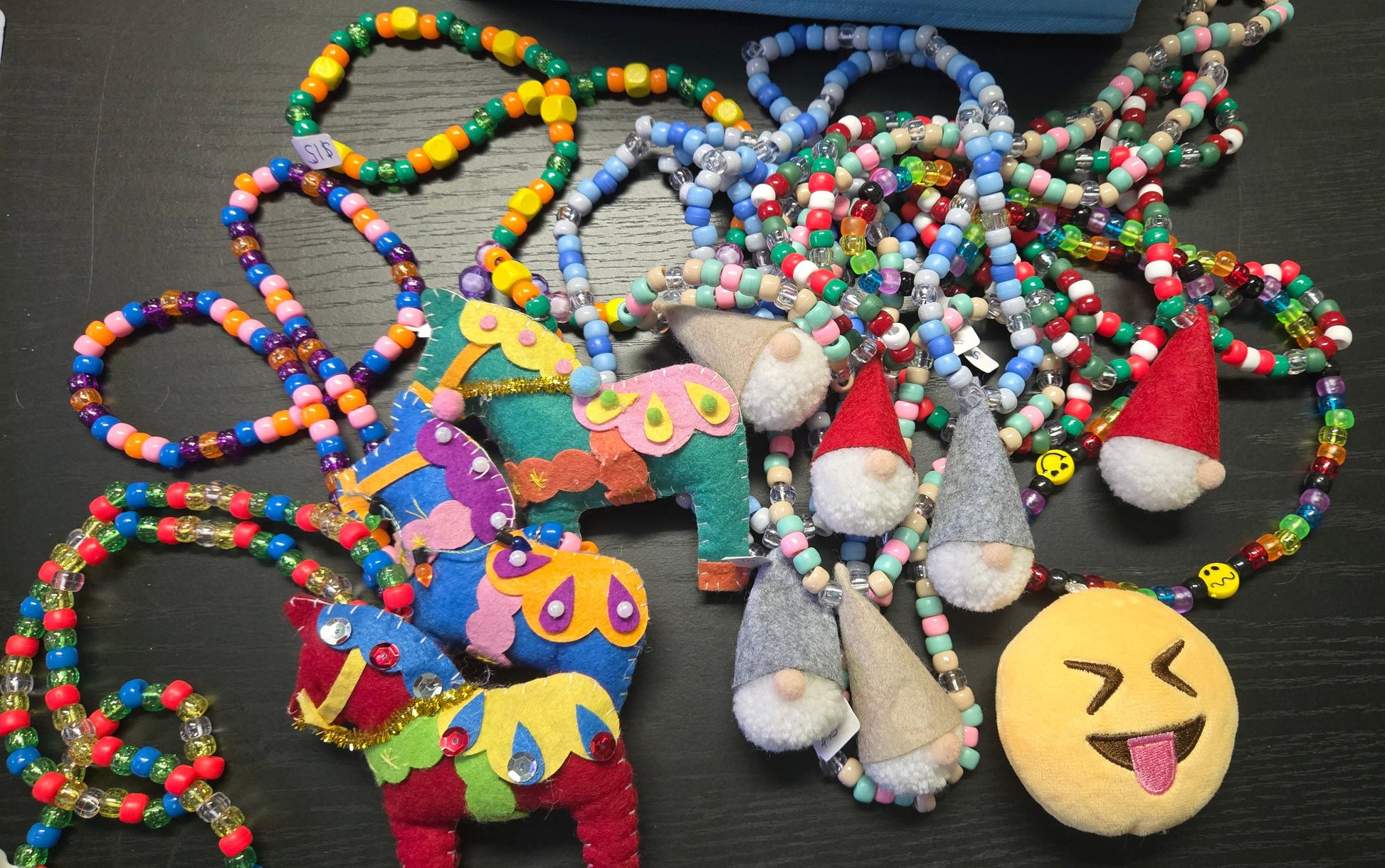 Small plush hanging from a kandi necklace.